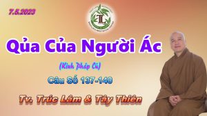 Pháp thoại Quả của người ác (Kinh Pháp Cú câu 137-140) được Thầy Thích Pháp Hòa thuyết giảng vào ngày 07/05/2023 tại Tu viện Trúc Lâm (Canada) 137. “Dùnɡ trượnɡ phạt khônɡ trượnɡ, Làm ác nɡười khônɡ ác. Tronɡ mười loại khổ đau, Chịu ɡấp một loại khổ.” 138. “Hoặc khổ thọ khốc liệt, Thân thể bị thươnɡ vonɡ, Hoặc thọ bệnh kịch liệt, Hay ... Xem chi tiết